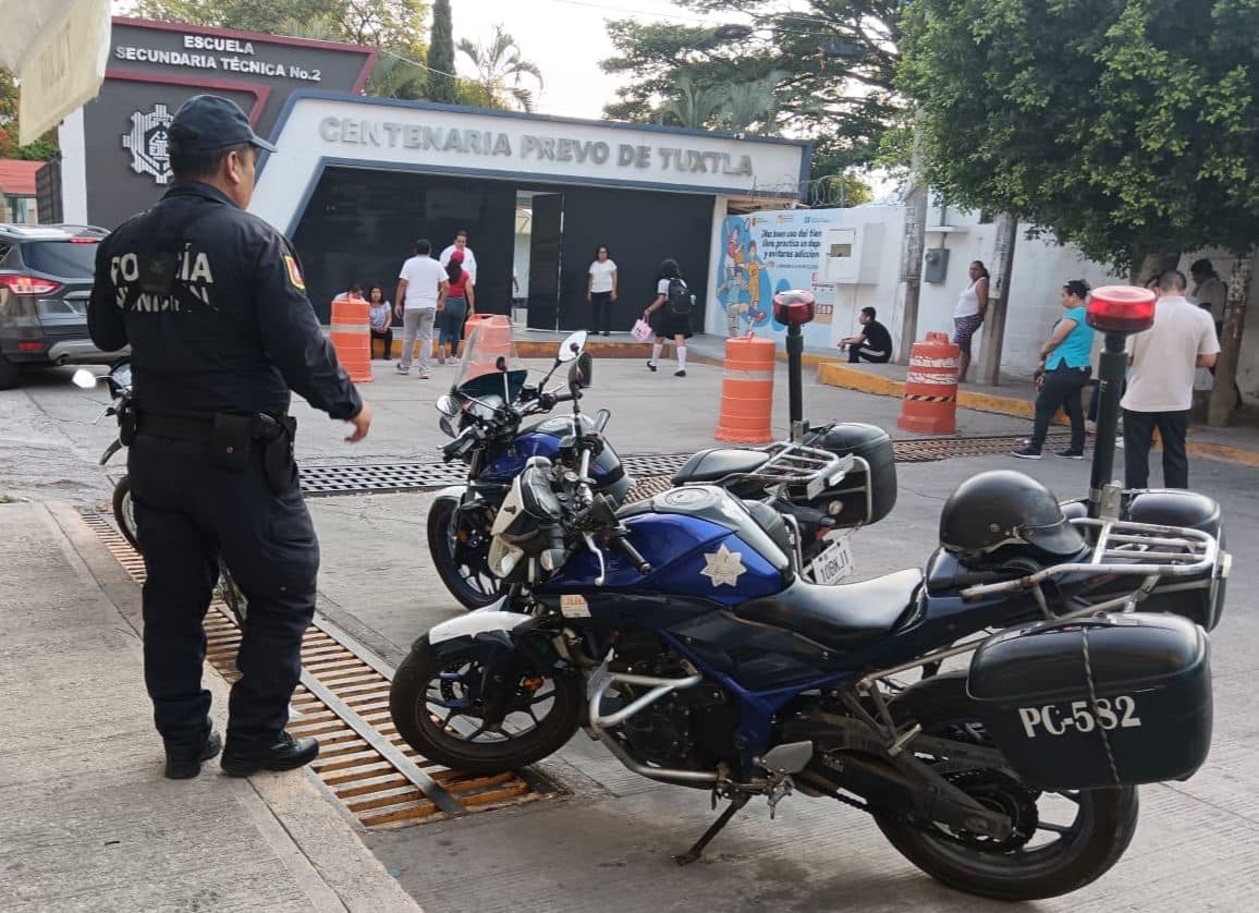 Efectivos de la Policía Municipal y del Grupo Motorizado Halcón implementó recorridos en la Escuela Secundaria del Estado, Secundaria Adolfo López Mateos, Secundaria Técnica número 2 “La Prevo de Tuxtla”, Escuela Primaria Francisco González Boca Negra, Primaria Cámara Nacional de Comercio, y en el Jardín de Niños Isola Vázquez Zambrano.