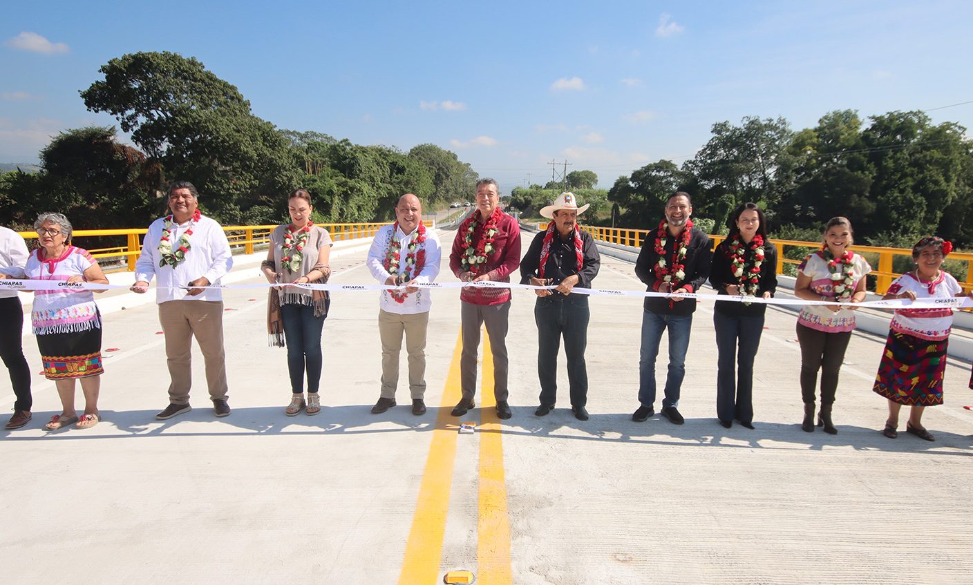 En Venustiano Carranza, el gobernador Rutilio Escandón Cadenas inauguró el puente vehicular Río Blanco y la cuarta etapa de la ampliación del tramo carretero La Angostura-San Francisco Pujiltic, con lo que beneficia a habitantes de éste y otros municipios de la zona.