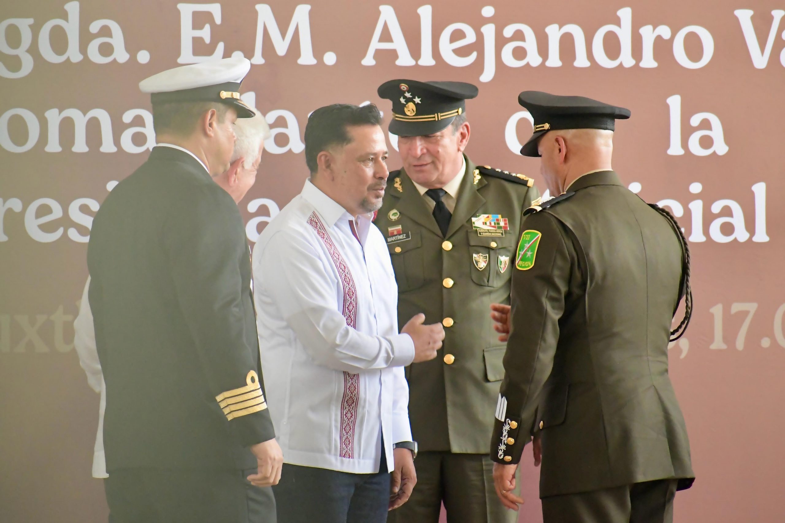 El líder del Congreso local le dio la cordial bienvenida y señaló que la seguridad y el bienestar del pueblo están garantizados con la coordinación entre los tres poderes y la heroica Secretaría de la Defensa Nacional.