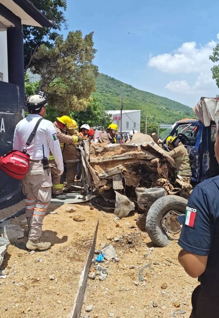 Al llegar a la altura del módulo policial conocido como “C-2”, el pesado vehículo impactó violentamente contra dos patrullas de la Guardia Estatal Preventiva —con matrículas 25027 y 23225— que estaban estacionadas en el sitio. El camión también embistió a dos taxis tipo Nissan, con números económicos 1800 y 3500, así como a un vehículo Versa gris, que quedó atrapado entre los demás automóviles y una unidad táctica conocida como “Rino”.La fuerza del impacto arrastró también a una camioneta tipo pick up blanca, en la que quedó sin vida su conductor, cuyo cuerpo fue recuperado por los servicios de emergencia y trasladado al Servicio Médico Forense (SEMEFO), donde permanece en calidad de desconocido.