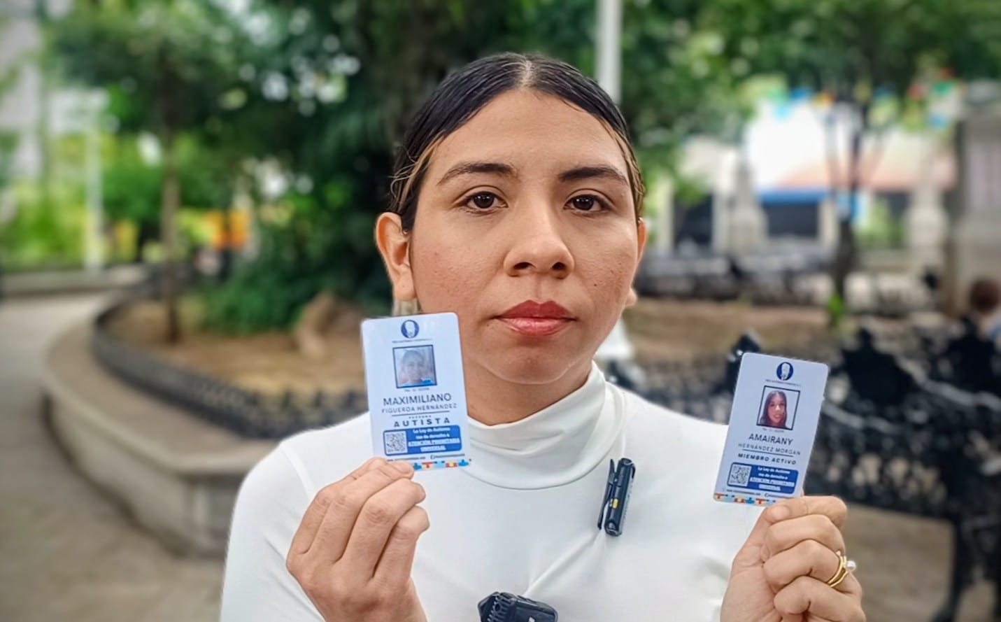 Amairany Hernández Morgan, madre de un menor con autismo, explicó ante los medios que decidió compartir su experiencia luego de descubrir que la organización estaría ofreciendo beneficios inexistentes a cambio de un pago y de la entrega de documentos personales.