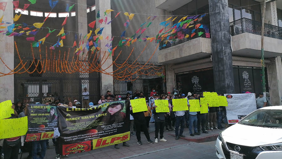 En las puertas del Congreso del Estado los manifestantes colgaron pancartas y mantas en las que se leía la exigencia de libertad para los detenidos y denunciaron presuntas irregularidades en los procesos judiciales.