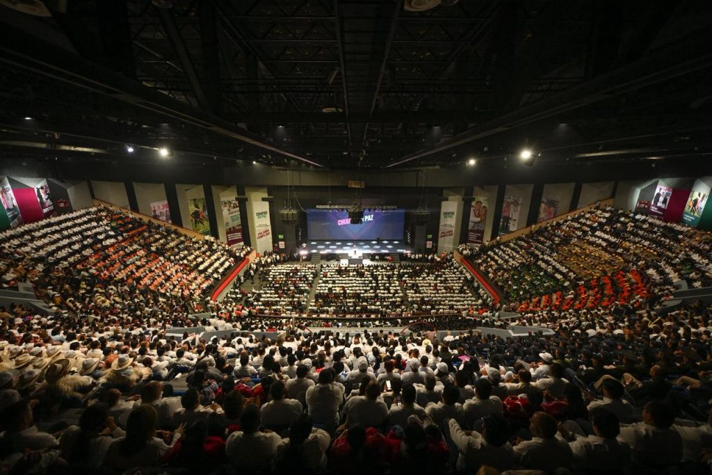 Desde el Polyforum Chiapas, espacio donde hace un año asumió el mandato ante las y los chiapanecos, Ramírez Aguilar reconoció el compromiso de quienes han acompañado este esfuerzo colectivo. Precisó que hoy se puede afirmar, con responsabilidad y certeza, que Chiapas avanza por la ruta de la paz, gracias al decidido apoyo de la presidenta Claudia Sheinbaum Pardo, al acompañamiento de las Fuerzas Armadas, al impulso del secretario de Seguridad Pública del Gobierno de México, Omar García Harfuch, y al trabajo coordinado entre las instituciones estatales y federales de seguridad y procuración de justicia.