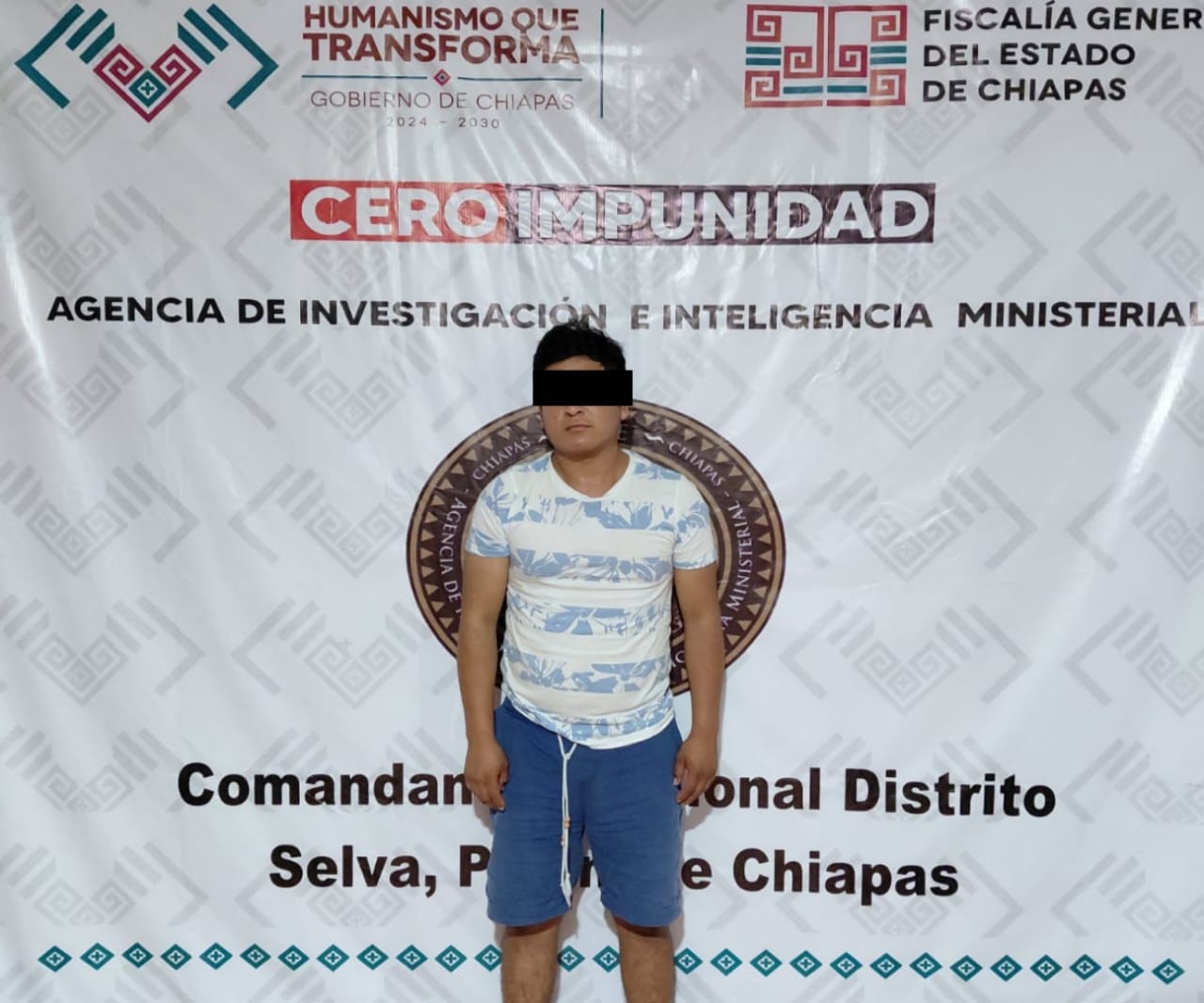 La Fiscalía General del Estado y la Secretaría de Seguridad del Pueblo ejecutaron un mandamiento judicial, vía reclusión, en contra de Eduardo “N”, como presunto responsable del delito de homicidio calificado, cometido en agravio de quien en vida respondiera al nombre de Román “N”, por hechos ocurridos el 16 de octubre de 2025 en el municipio de Palenque.