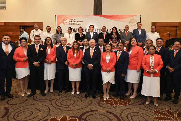 Luego de tomar protesta a las y los integrantes del Consejo Directivo 2026-2027 del Colegio de Contadores Públicos Chiapanecos, la presidenta del Comité Ejecutivo Nacional del Instituto Mexicano de Contadores Públicos, Ludivina Leija Rodríguez, los convocó a mantenerse unidos y a ejercer su labor con ética y responsabilidad, a fin de contribuir a la transparencia y a la rendición de cuentas.