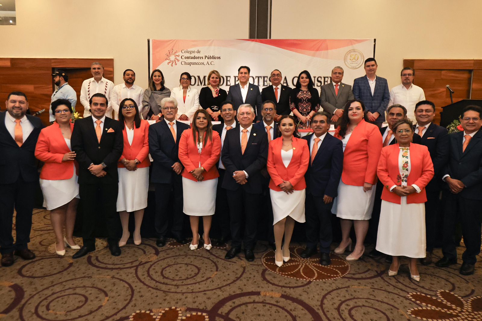 El mandatario felicitó a quienes integran el nuevo Consejo Directivo y señaló que su presencia, así como la de las y los servidores del pueblo, en este acto protocolario representa una invitación para que este colegio de profesionistas se sienta parte del gobierno de la transformación humanista. Asimismo, reconoció la aportación de las contadoras y los contadores al desarrollo de Chiapas y de México, tanto en el ámbito público como en el privado.
